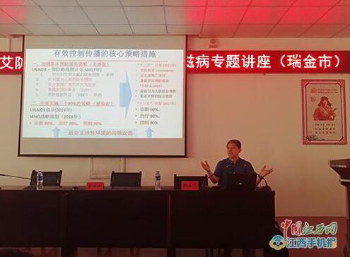2019年10月8日上午,中国疾病预防控制中心艾防中心主任韩孟杰教授在瑞金市举办艾滋病专题讲座。