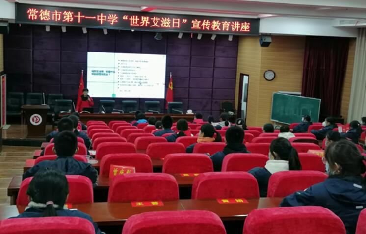 12月1日,常德市第十一中学在学校多媒体教室开展“世界艾滋日”主题宣传教育活动。活动现场通过讲座和发放…