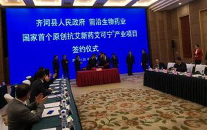 11月29日,齐河县在济南举行国家首个原创抗艾滋病新药艾可宁(艾博韦泰)产业项目签约仪式暨新闻发布会,齐…