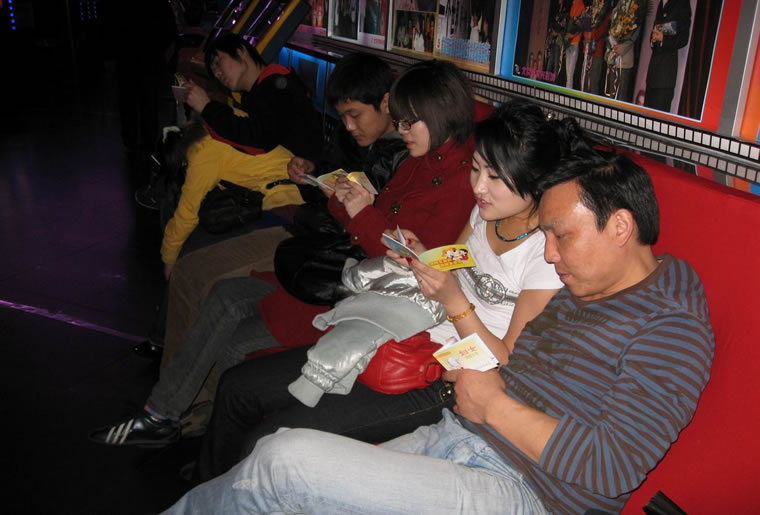 东城区工作人员在长虹影院指导志愿者填写报名表