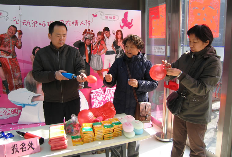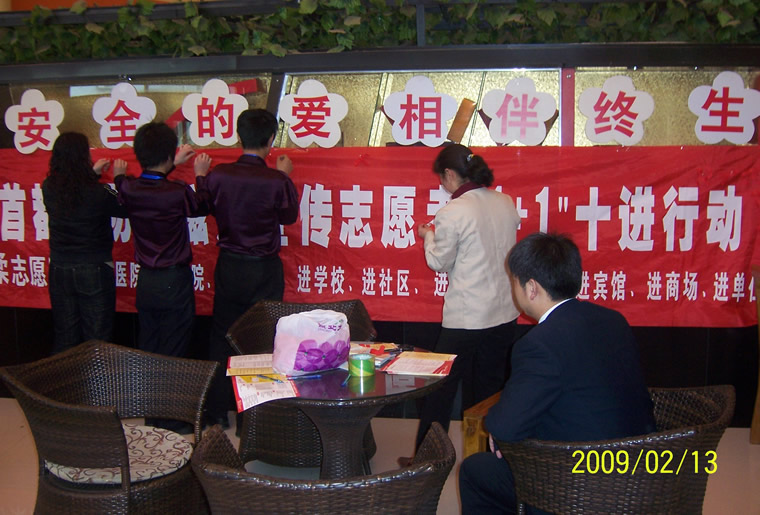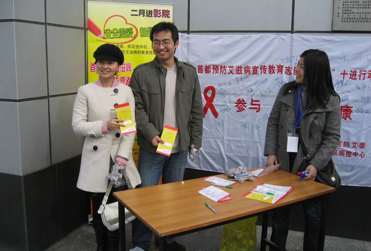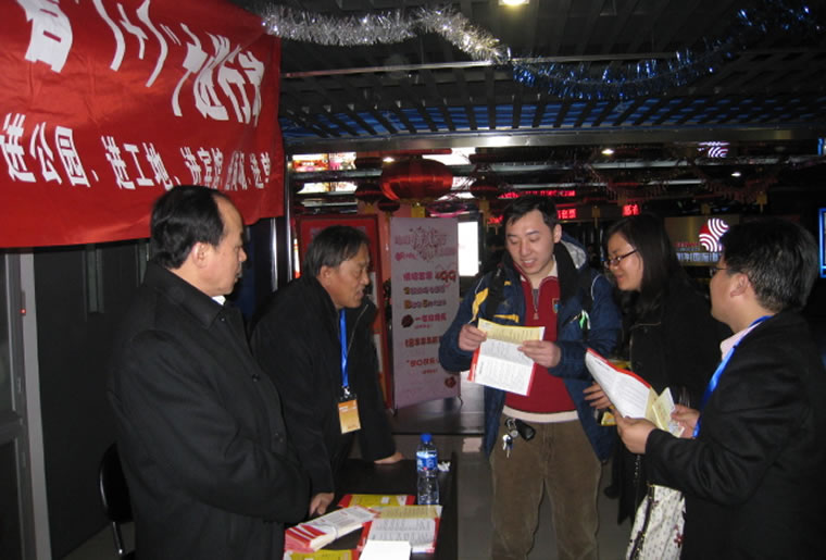东城区工作人员在长虹影院门口对观众进行志愿者招募