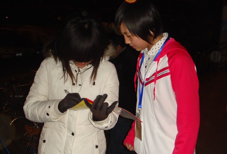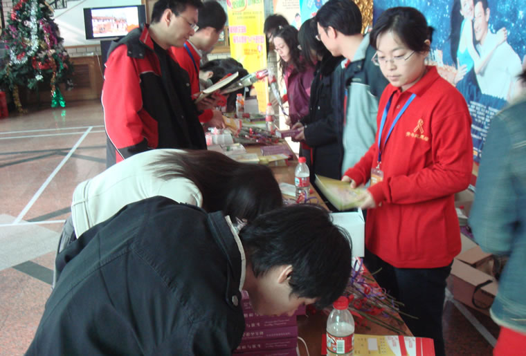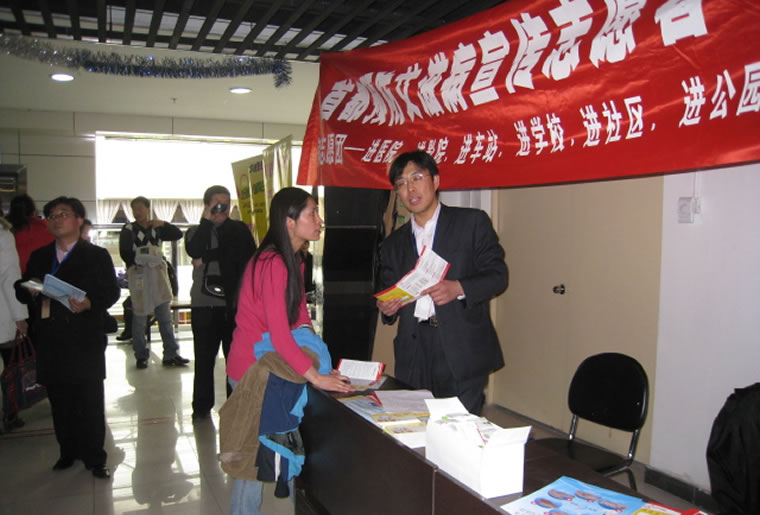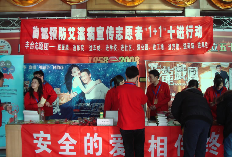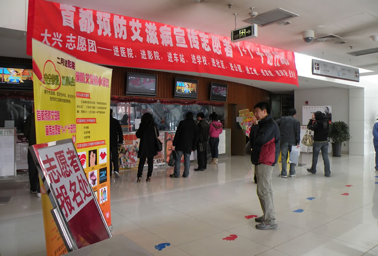 东城区工作人员在长虹影院门口对观众进行志愿者招募