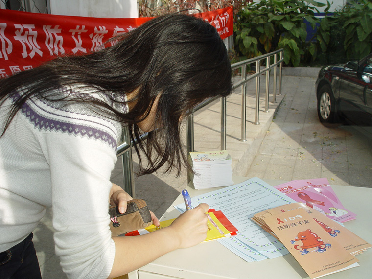 奥运村地区文教科开展艾滋病宣传志愿者十进行动