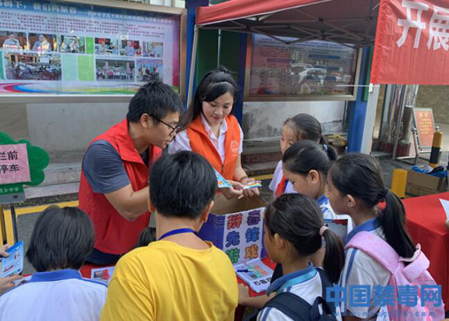 8月30日,是广东省肇庆市怀集县岗坪镇中心小学一年级新生报到入学时间,为进一步加强青少年毒品预防教育,…