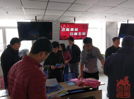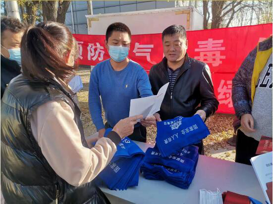 永乐店镇综治办联合信访办举办禁毒宣传活动,工作人员在综治中心前向辖区群众发放禁毒宣传资料、《北京市禁…