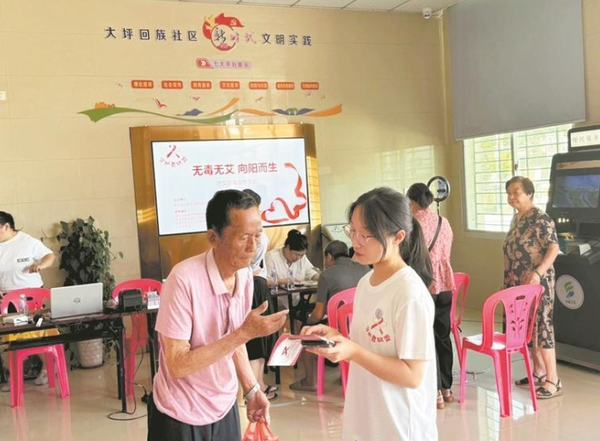 为普及禁毒防艾知识,提高社区居民禁毒防艾意识,提升青年学生禁毒防艾实践技能,泉州市疾控中心携手泉州幼高专部分师生,日前以“无毒无艾,向阳而生”为主题开展了禁毒防艾知识宣传进社区系列活动。图为学生志愿者向社区居民积极宣传讲解艾滋病传…
