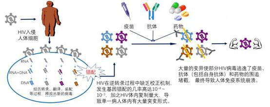 HIV的一个显著特点是在病毒复制产生子代的过程中,其遗传物质发生高度改变,这个特点不仅是HIV在免疫和药物压力下赖以生存的基础,也是病毒难以消除的主要原因和疫苗研制的主要障碍。有科学家估算“艾滋病病毒的进化速度大约是人类基因进化速度的10…