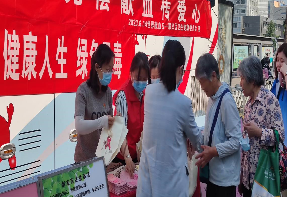 6月14日,依托“世界献血者日”,顺义区疾控中心联合顺义区中心血库在华联商厦西广场献血车旁开展“远离艾滋 健康6月14日,依托“世界献血者日”,顺义区疾控中心联合顺义区中心血库在华联商厦西广场献血车旁开展“远离艾滋 健康人生 绿色无毒”禁…