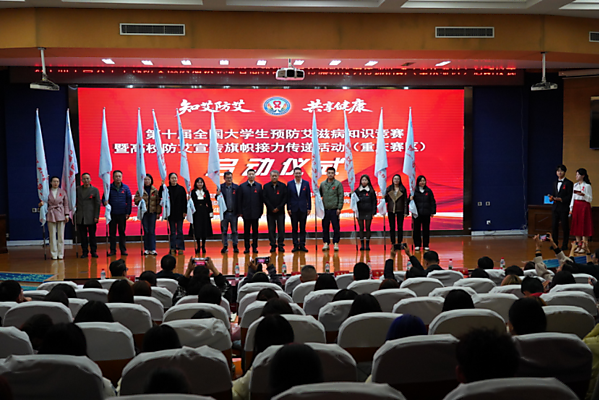 11月19日下午,第十届全国大学生预防艾滋病知识竞赛暨高校防艾宣传旗帜接力传递活动(重庆赛区)启动仪式在重庆医药高等专科学校举行。来自重庆大学、西南大学、重庆师范大学等11所高校的代表应邀参加。