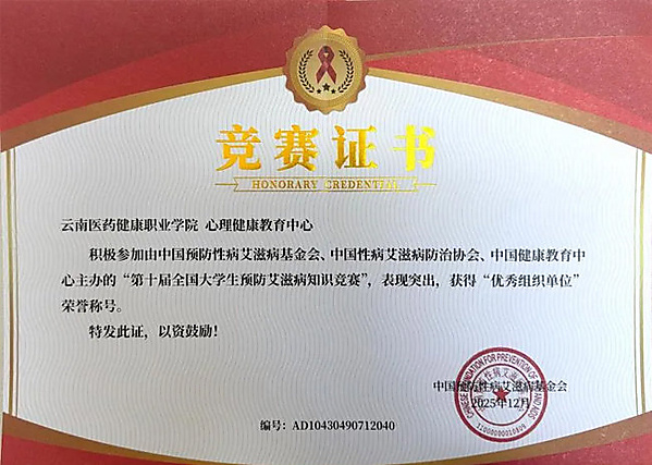 云南医药健康职业学院获全国防艾知识竞赛“优秀组织单位”
