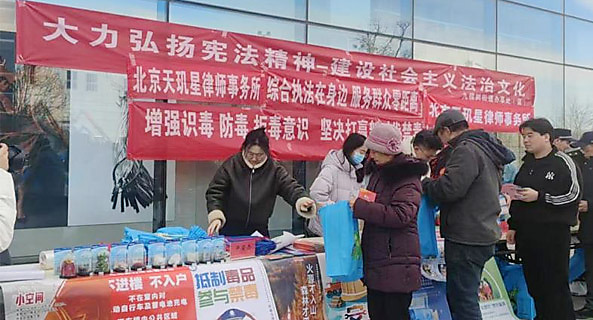 12月4日是第十一个国家宪法日,为深入贯彻习近平法治思想,大力弘扬宪法精神,九棵树街道领导高度重视及时部署,多部门协同,在辖区内广泛开展“12·4”国家宪法日系列宣传活动,禁毒宣传力量也参与其中,营造守法的良好社会氛围。