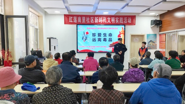 广外街道禁毒工作站联合红莲南里社区开展“禁毒普法进社区,共筑防线保安全”宣传活动,禁毒社工在现场悬挂宣传条幅,摆放禁毒知识展板,向参加活动的居民讲解毒品的种类、吸毒对身体的伤害以及毒品对家庭、社会的危害;社区民警结合真实案例向大家…