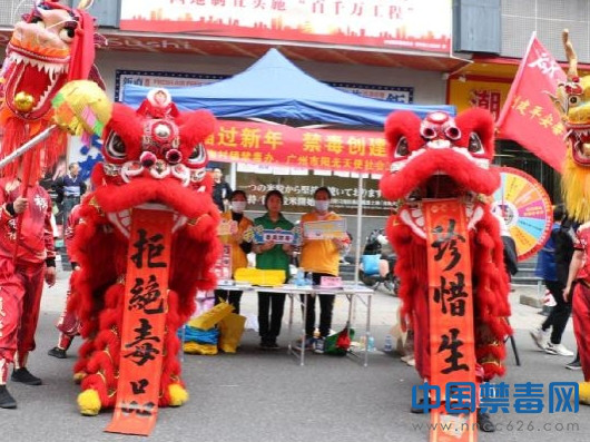 在新春龙年来临之际,为提高群众识毒、防毒、拒毒意识,营造平安、和谐的春节氛围,2月1日,广东省广州市番禺区禁毒办、南村镇禁毒办联合广州市阳光天使社会工作服务中心,藉着南村镇“迎春花市”人员流动频繁的契机,在南村花街开展主题“迎春接福…