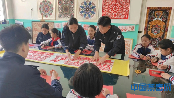 近日,河北省邯郸市曲周县禁毒办邀请邯郸市剪纸“非遗”传承人的弟子在曲周县小河道小学,开展以“健康人生,绿色无毒”为主题的禁毒宣传教育活动。