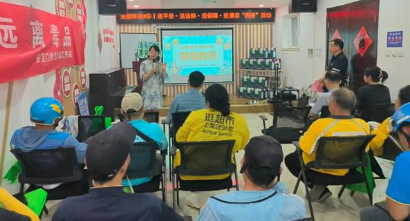 安定门街道联合党群服务中心、社戒社康工作站、北京市天康戒毒所,在车撵店党群服务中心开展禁毒宣传活动。天康所讲师为现场群众播放了禁种铲毒宣传视频,展示仿真毒品模型,向快递小哥详细介绍了毒品的种类与危害、毒品原植物的外貌特征与识别方法…