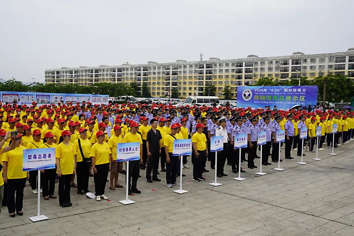 广西崇左市在宁明县花山广场隆重举行2025 年“6?26”国际禁毒日中越联合公开销毁毒品活动暨“全民禁毒宣传月”集中宣传活动启动仪式。活动以“防范青少年药物滥用”为主题,由崇左市禁毒委员会主办,宁明县禁毒委员会承办,广西壮族自治区第三强制…
