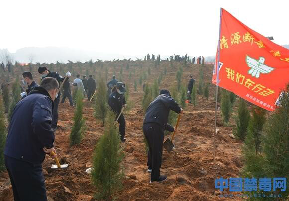 山东潍坊开展禁毒宣传义务植树活动