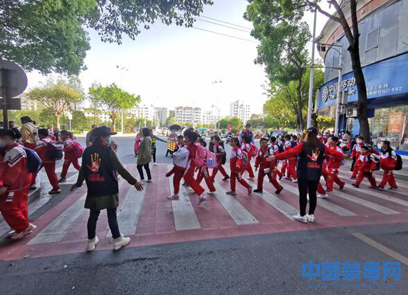 在护学岗前,上犹县禁毒志愿者向周边临街店铺传递禁毒知识,沿路派发禁毒宣传折页,切实增强居民群众抵御毒品侵蚀的自觉性和主动性。护学岗中,禁毒志愿者做好交通疏导工作,引领学生安全通过马路,及时向学生及学生家长耐心讲解禁毒知识,介绍了海洛因、冰毒、摇头丸等常见毒品的危害,了解吸食毒品后的症状、表现与正常人的区别,提高对毒品的知晓率和防毒、拒毒的意识和能力。