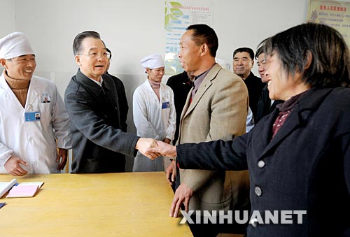 这是温家宝总理来到河南省上蔡县芦岗乡文楼村卫生所,看望在这里工作的医务人员和前来就诊的艾滋病患者。 新华社记者李学仁摄