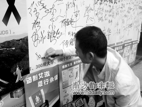 昨天,由联合国艾滋病规划署资助的“中国防艾万里行”活动率先在广州启动。活动首日,各年龄层次的广州市民在签名横幅上落下自己的大名,纷纷为我国公益防艾活动表达着自己的爱心与关注。