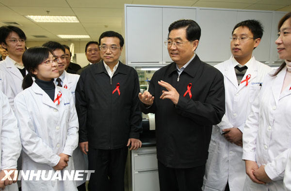胡锦涛等在北京地坛医院考察艾滋病防治工作