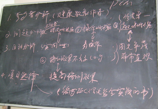研讨会上,编写组运用PCM管理手法首先制作了“实用手册”的PDM(项目设计图)和PO(项目计划)。然后制作出了“实用手册”的框架、选择的事例、内容及人员分工,本手册分为五大部分:序、前言、简述IEC及相关模式(ASSURE、ADDIE、Tom′s模式)、IEC活动流程(Tom′s模式包括分析阶段、设计阶段、开发实施阶段、监督与评估阶段)、PCM手法的应用。本手册将用大量实例阐述和印证IEC为切入点的项目管理的理论,通过介绍JICA艾滋病项目实施过程中取得良好效果的活动实例,理论联系实际,更加有效地指导实际工作。