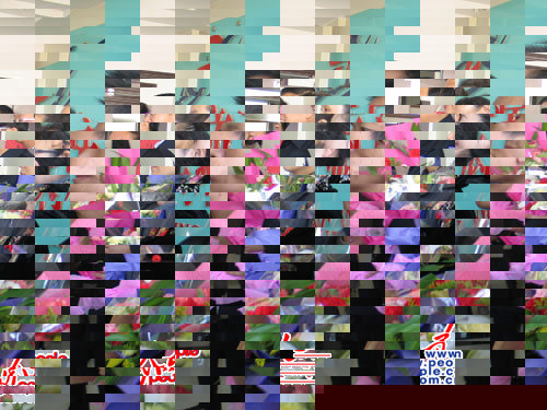 在银川市疾病预防控制中心,宁夏回族自治区卫生厅副厅长叶旭(左一)等领导向蓝天工作组(艾滋病病毒感染者和病人小组)的五位艾滋病感染者献花
