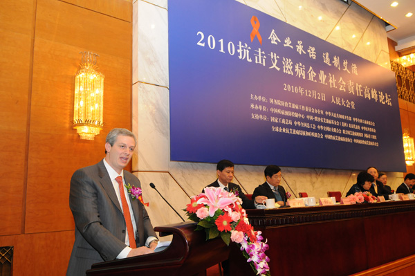 “2010抗击艾滋病企业社会责任高峰论坛”是首个多部门主办,众多企业积极参与的以艾滋病为主题的企业社会责任论坛。相关政府部门领导、中外企业代表以及学者专家齐聚一堂,总结和分享了企业在中国开展防治艾滋病工作的经验,探讨了企业参与艾滋病防治工作的途径和方式,并倡导更多的企业以更加有效的方式参与艾滋病防治工作。