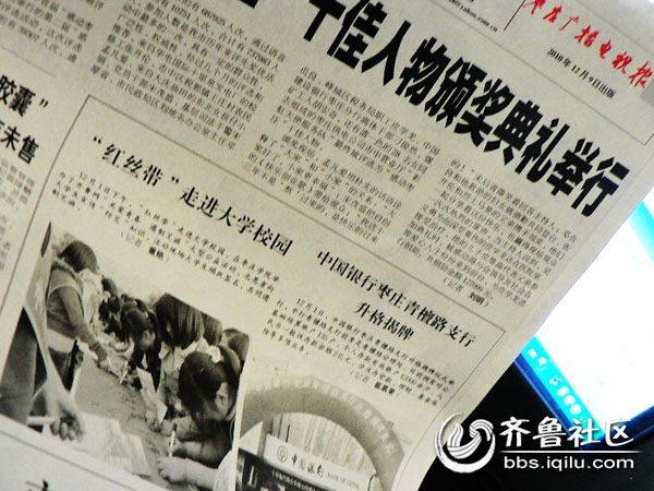 枣庄广播电视报报道齐鲁网枣庄学院艾滋病日公益活动(摄影 齐鲁拍客“枣通社”)