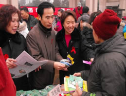 2010年12月1日,是世界第二十三届艾滋病日,今年艾滋病日的主题是“遏制艾滋,履行承诺”。东城区防艾委成员单位:东城区卫生局、疾控中心、团委、计生委、综治办、缉毒办、红十字协会和天坛街道办事处等10余家在天坛公园北门开展了防治艾滋病的宣传活动。各单位相关领导、工作人员和志愿者共计35人参加了本次宣传活动。活动现场摆放宣传板20余块,悬挂横幅3条。共计发放宣传品4000余份,小礼品2000余份。工作人员通过各种形式的讲解,把防治艾滋病的知识告诉了参加活动的每个人,并号召大家从我做起,遏制艾滋。此次活动吸引千余居民参与,大家通过观看展板,领取宣传资料和宣传品了解了防治艾滋病的知识。本次活动共进行约两个小时,活动现场始终保持着热烈而有序的气氛。此次宣传活动不但提高了当地居民对艾滋病的知晓率,更加动员了全社会参与到防治艾滋病任务中来,也将为东城区今后艾滋病防治工作的开展打下良好的基础。