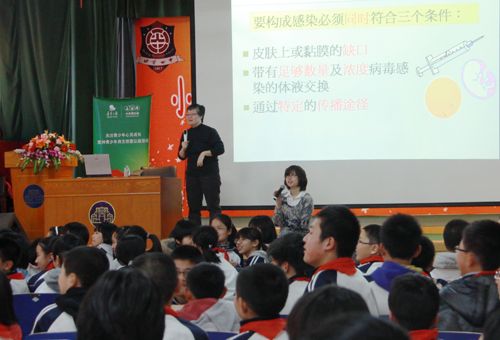 2011年3月7日??今天下午,北京四中初中部的大礼堂坐满了300多个初中学生。他们正在经历一场激烈的淘汰赛。面对香港艾滋病基金会总干事连爱珠女士的7个关于艾滋病的常识问题,只有3个学生坚持到最后,答对了所有问题。接下来的一个多小时,人称侠女的连爱珠与学生们分享了自我保护的知识,纠正了认知误区,并号召大家善待艾滋病患,共同创造一个没有歧视的社会。