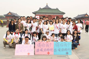 2011年5月8日是第64个“世界红十字日”,北京市红十字会防艾核心小组(简称:小组)组织了来自北京11所高校的26名志愿者在天坛公园举行“微笑拥抱,快乐生活”的主题外展活动。