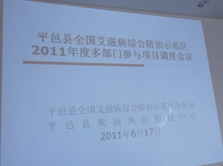日前,平邑县人民政府防治艾滋病工作委员会召开全县2011年度多部门参与防治艾滋病工作调度会议。县政府办公室、县总工会、县妇联、团县委、县司法局、县卫生局、县教育和文化体育局、县人口和计划生育局、县人力资源和社会保障局、县工商行政管理局、县广播电视台等部门(单位)分管负责人和艾防项目联系人等共30余人参加了会议。县艾防委员会副主任、县政府办公室副主任华逢君出席会议并做重要讲话,县艾防办业务主管、县疾控中心副主任相龙伟和示范区项目官员等对2011年度全县艾滋病综合防治部门项目工作进展情况进行了通报和技术指导,会议由县艾防办副主任、县卫生局副局长、县疾控中心主任杨建坤主持。