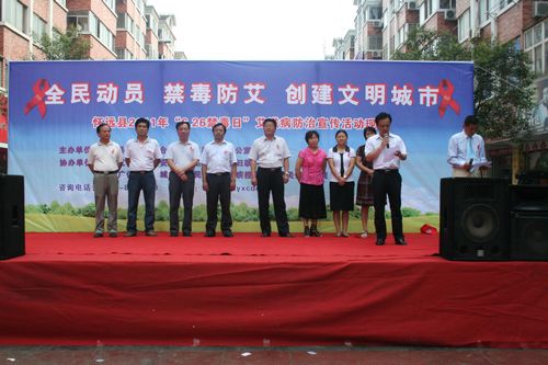 6月26日,团县委会同来自各部门禁毒防艾宣传队伍在禹王路步行街为中心的禹王路两侧一致拉开,多部门出动,联合举办了以“全民动员禁毒防艾创建文明城市”为主题的大型艾滋病宣传活动。县领导徐长奎、郭长富已经公安、卫生、妇联、团委的负责同志出席了活动现场。县公安局局长卫兵与县防艾委副主任、卫生局局长左国成分别致辞,重点强调了禁毒防艾的重要性,特别是青少年的保护是工作的重点。于此同时,在古井商城禹王路两旁,各部门以摆展板、拉横幅、设咨询台的形式,以毒品的危害、禁毒防毒的重要性、防治毒品对青少年的侵害、艾滋病与毒品的关系为内容进行了广泛的宣传。