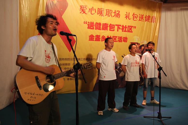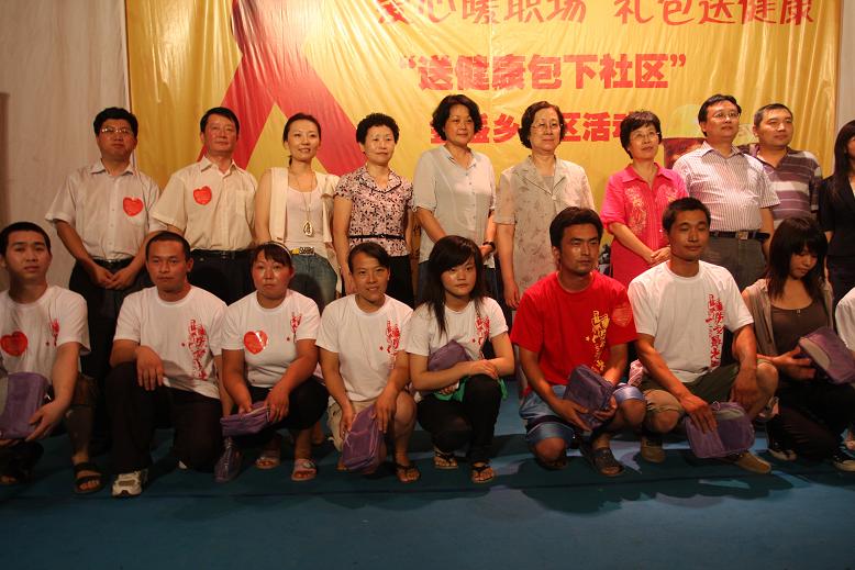 值此建党90周年之际,由全国工商联和国务院艾滋病防治工作委会员会办公室联合主办,人力资源和社会保障部、住房和城乡建设部、农业部、卫生部、全国总工会、共青团中央作为支持单位,中华红丝带基金、北京潮人商会、首都高校青春红丝带社团领导小组办公室共同负责实施的“带健康包下社区”系列活动于2011年7月2日晚上在北京市朝阳区金盏乡皮村新工人剧场拉开帷幕。卫生部原副部长、中华红丝带基金副理事长彭玉,全国工商联原秘书长、中华红丝带基金常务副理事长谷彦芬,全国工商联扶贫与社会服务部副巡视员、中华红丝带基金副监事长刘薇,人力资源社会保障部农民工工作司杜国羽,住建部人事司劳动与职业教育处处长路明,中华红丝带基金秘书长宋?,北京潮人商会副秘书长柯克亚,国艾办政策协调部副主任吕柯出席了此次活动。中华红丝带基金理事会员企业、全国工商联直属会员商会、北京潮人商会等企业家代表、首都高校青春红丝带社团领导小组办公室的负责人,首都10多所高校的青春红丝带大学生志愿者,以及多家国内新闻媒体,还有来自社区的外来务工人员代表,和同心实验小学小学生等100余人参加此次活动。活动由原美国洛杉矶电视台主持人、艾美奖获得者高光勃倾情主持。
