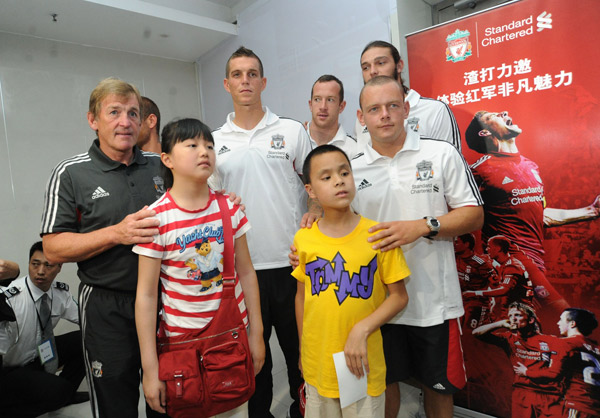 在训练营中,利物浦队的教练根据儿童的特点设计了简单的热身训练,伊恩•拉什也亲自上阵为孩子们演示了常用脚法,博得了孩子们热烈的掌声。准备活动后,孩子们被分成4组,各组分别由利物浦和本地教练带领进行过人、盘球和射门训练。