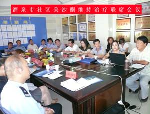 为实现吸毒人群在强制隔离场所与社区美沙酮药物维持治疗的“无缝对接”, 发挥美沙酮药物维持治疗在巩固戒毒成果、减少毒品对社会危害等方面的作用,从而减少艾滋病、丙型肝炎等传染病在吸毒人群中的传播,2011年8月31日酒泉市疾控中心受市防艾办委托举办了“酒泉市美沙酮维持治疗联席会议”。市、区两级公安局分管禁毒工作的副局长、市、区两级疾控中心分管艾滋病防治工作的副主任、肃州区卫生局副局长、肃州区城区各派出所所长、各社区主任以及社区美沙酮维持治疗门诊负责人等30余人参加了会议。