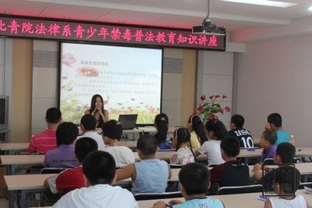 2011年暑假期间,北京青年政治学院法律系学生在北京市朝阳区禁毒办公室及北京市禁毒教育基地的指导下,在酒仙桥辖区以“远离毒品危害,健康成就未来”为主题展开系列青少年禁毒教育调查、研究以及宣传活动。