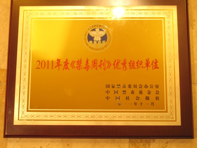 北京市禁毒办荣获“2011年《禁毒周刊》优秀组织单位”称号(李轶凡/摄)