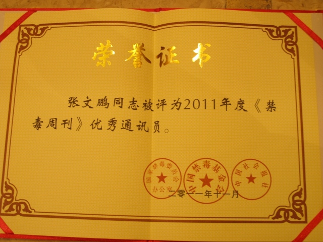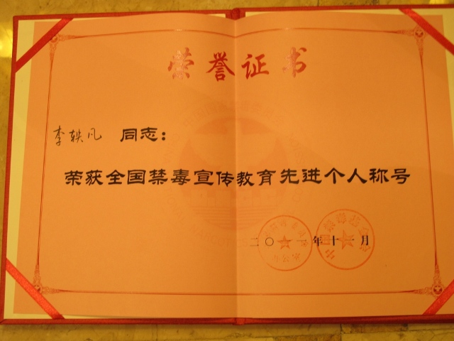 北京市禁毒办荣获“2011年《禁毒周刊》优秀组织单位”称号,市公安局禁毒总队办公室张文鹏同志被评为“2011年《禁毒周刊》优秀通讯员”;市公安局禁毒总队协调指导大队李轶凡同志获得“全国禁毒宣传教育先进个人”称号;北京市禁毒办接受国家禁毒办颁发的“深化全民禁毒宣传教育工作试点单位”牌匾。