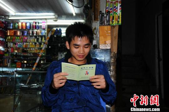 越南小伙在看印成中越文版的防艾知识手册。