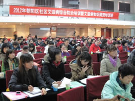 2012年3月15日~16日,朝阳区公共卫生管理委员会和区疾控中心举办了“朝阳区社区艾滋病综合防治暨艾滋病防治师资培训班”。朝阳区各街道/地区办事处艾滋病防治主管科室科长、艾滋病防治专兼职人员、社区卫生服务中心主管领导、卫生专干、艾滋病防治专/兼职人员共200余人参加了培训。培训会对2012年度街道/地区和社区卫生服务中心的艾滋病防治工作提出了相关要求,对2012年朝阳区全球基金艾滋病项目进行了动员与技能培训,对社区开展吸毒、流动人口、暗娼人群干预技巧、HIV/AIDS病例社区管理等内容进行了介绍。此次培训进一步加强了朝阳区街道/地区办事处和社区卫生服务中心对艾滋病防治工作的重视程度,提高了社区工作人员艾滋病综合防治水平,增强了开展艾滋病综合防治工作的主观能动性和工作技能,为今后社区艾滋病防治工作打下了坚实基础。
