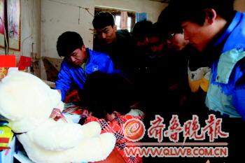 18日,齐鲁志愿者潍坊站进行了第一次公益活动,大学生志愿者们来到临朐柳山镇辛山村看望了艾滋病小女孩小璐璐,并和小女孩结成对子,将定期上门做家教,先帮助她学完小学课程。