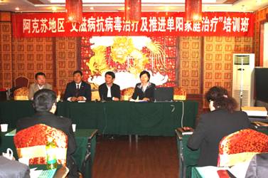 为加强艾滋病抗病毒治疗机构工作人员的专业技能和诊疗水平,顺利实施改良一线药物治疗方案,探讨和解决治疗工作中存在的问题,进一步扩大抗病毒治疗覆盖率,提高治疗工作质量,减少和降低艾滋病相关死亡,推进单阳家庭抗病毒治疗,预防艾滋病的配偶间传播,新疆阿克苏地区疾控中心于2012年4月12-14日在阿克苏市举办了“艾滋病抗病毒治疗及推进单阳家庭治疗培训班”。 阿克苏地区各县(市)艾滋病抗病毒治疗定点医院分管的领导、抗病毒治疗医生和疾病控制中心性艾科科长、艾滋病网报信息管理各共计43人参加了培训。