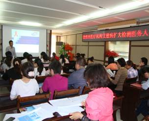 为进一步加强艾滋病防治工作,扩大监测检测覆盖面,最大限度发现艾滋病病毒感染者,根据《酒泉市扩大艾滋病抗体检测实施方案》精神,结合敦煌市实际, 2012年5月9日,敦煌市艾滋病综合防治示范区工作办公室组织召开了敦煌市医疗机构艾滋病扩大检测医务人员培训班。来自全市各医疗机构自愿咨询检测点的负责人,实验室负责人和各监测点数据上报人员共计40多人参加了培训。
