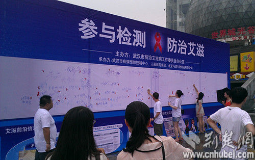 市民纷纷签名响应艾滋病检测防治