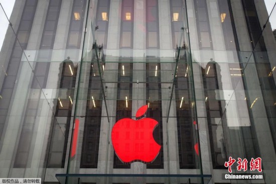 美国纽约曼哈顿区,苹果专卖店将Logo点亮为红色,宣传世界艾滋病日。