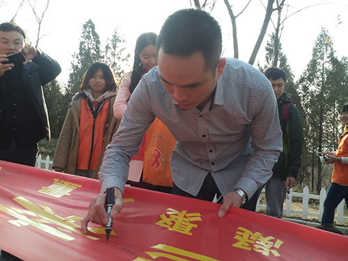 11月22日上午,34名首医志愿者来到北宫森林公园向游客宣传艾滋病知识,倡导大家消除歧视。“艾滋病传染途径有哪些”,“蚊虫叮咬会传染艾滋病吗”,“艾滋知多少”环节通过一些小问题增加公众对艾滋的了解;“我是一名艾滋病患者,能给我一个拥抱么?”,“艾的拥抱”鼓励人们给感染者(由志愿者扮演)更多理解与关爱;另外,“为艾行走”、“为艾签名”环节让游客对这一疾病有了更多认识,并在“防治艾滋,拒绝歧视”主题横幅上写下自己的名字。