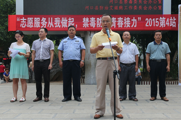 启动仪式上,河口县禁毒委员会主任、县委政法委书记杨洪同志提出三个要求:一是高度重视,增强禁毒防艾知识;二是加强宣传教育,普及禁毒和艾滋病防治知识;三是相关部门要搭建服务平台,有效整合资源。