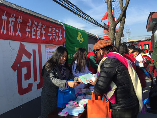 怀柔区疾控中心在春节前夕为庙城镇庙城村民送去了艾滋病防控知识